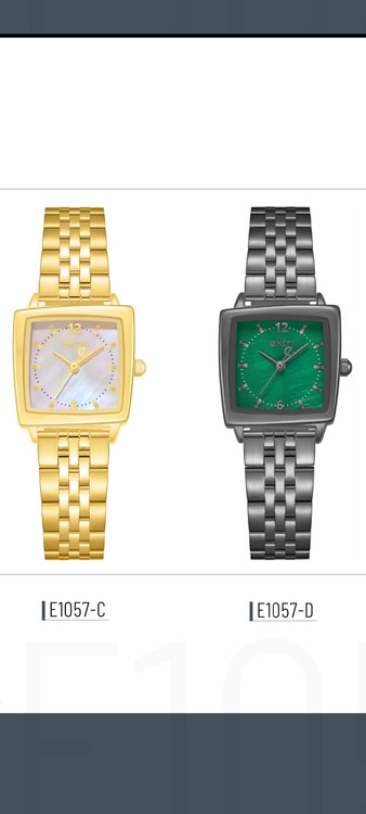 هر دو رنگ موجوده برای انتخاب رنگ پیام دهید 😍ساعت مچی با طراحی کلاسیک و بند فلزی، مناسب برای خانمها مدل E1057-C با رنگ طلایی و صفحه مرواریدی و مدل E1057-D با بدنه و بند نقرهای و صفحه سبز. مناسب برای استایل روزمره و رسمی، مقاوم و شیک.