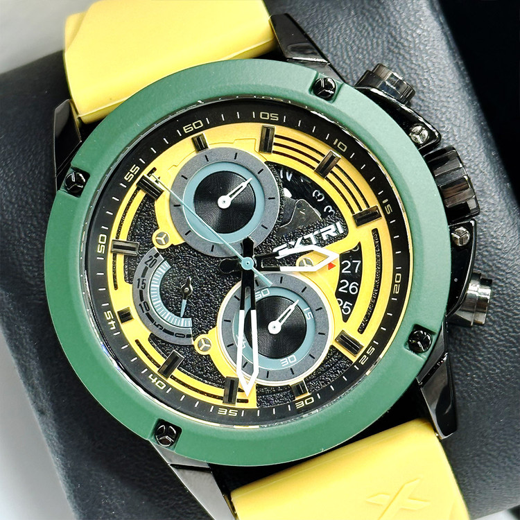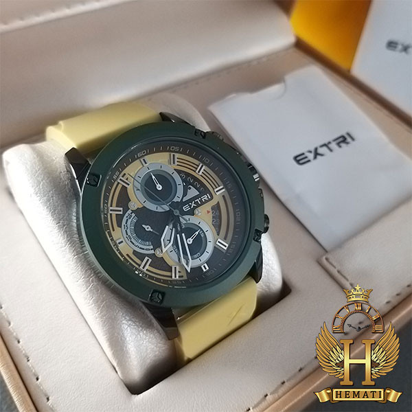 ساعت مردانه EXTRI X6065-G ، بند رابر(سیلیکونی) راحت زرد اخرایی و بدنه استیل دایره سبز هماهنگ با صفحه زرد، با طراحی منحصر به فرد این ساعت را به انتخابی ایده ال بین آقایانی که امضای شخصی در استایلشان دارند و به اکسسوری های خاص علاقه دارند تبدیل کرده است. اکستری با طراحی ساعت هایی شیک و اختصاصی برای افرادی که سلیقه ای متفاوت دارند. دارای گارانتی شرکتی می باشد.