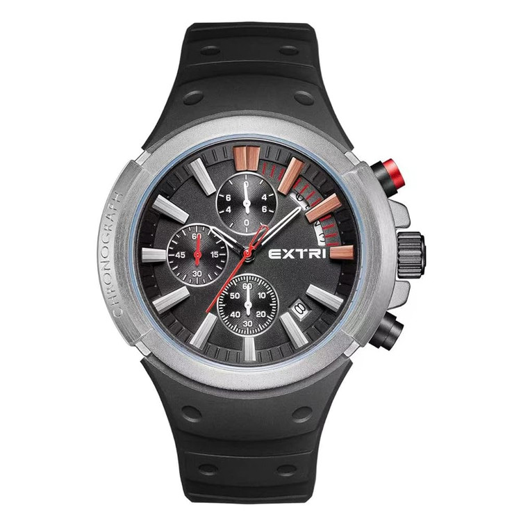 ساعت مردانه اکستری X6058-B ، بند رابر(سیلیکونی) راحت مشکی و بدنه استیل دایره مشکی هماهنگ با صفحه مشکی با طراحی منحصر به فرد این ساعت را به انتخابی ایده ال بین آقایانی که امضای شخصی در استایلشان دارند و به اکسسوری های خاص علاقه دارند تبدیل کرده است. اکستری با طراحی ساعت هایی شیک و اختصاصی برای افرادی که سلیقه ای متفاوت دارند. دارای گارانتی شرکتی می باشد.