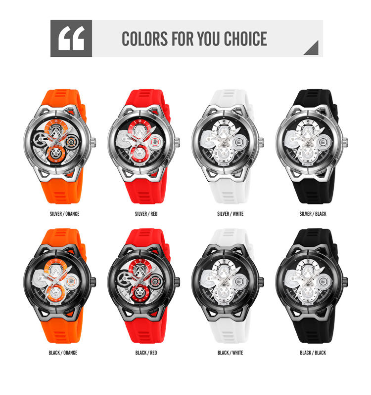 ساعت مچی اسپرت با طراحی مدرن و متفاوت، مناسب برای آقایان و بانوان با سلیقههای خاص. این ساعتها با بندهای سیلیکونی باکیفیت در رنگهای جذاب مشکی، قرمز، نارنجی و سفید عرضه میشوند و ظاهری چشمگیر دارند. گزینه عالی برای استایل روزمره یا ورزشی، مقاوم و راحت در استفاده روزانه. برای خرید با قیمت مناسب به سایت ما مراجعه کنید.
