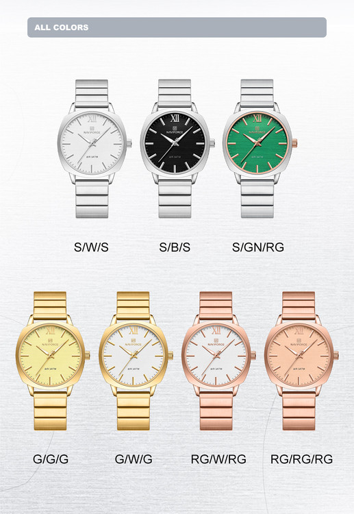 ساعت مچی زنانه نیوی فورس مدل 5044 با طراحی لوکس و مدرن، مجهز به موتور کوارتز دقیق و مقاوم در برابر ضربه و آب. این ساعت با صفحهای زیبا و بند مقاوم، گزینهای ایدهآل برای ست کردن با استایلهای روزمره و رسمی است. یک ساعت خاص و با کیفیت برای خانمهای دوستدار سبک منحصر به فرد و استانداردهای اروپا.