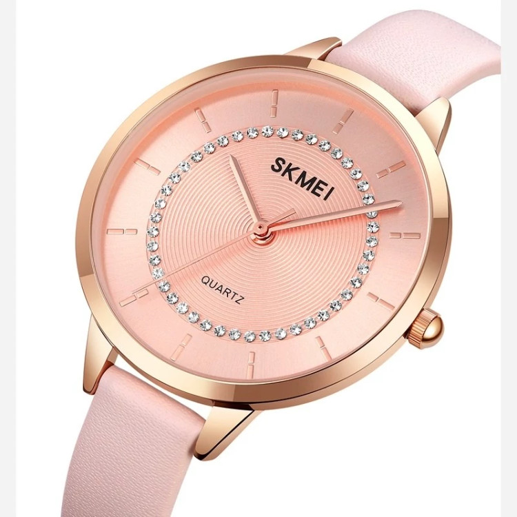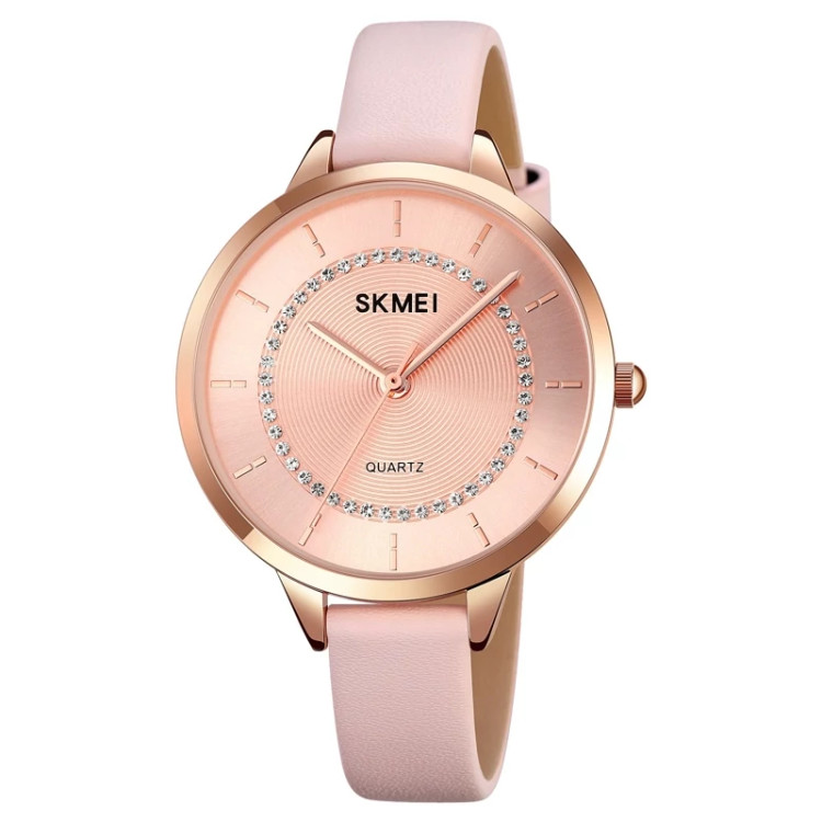 ساعت زنانه اسکمی مدل 1976 رنگ ثابت بند چرمی موتور ژاپن رنگ ثابت