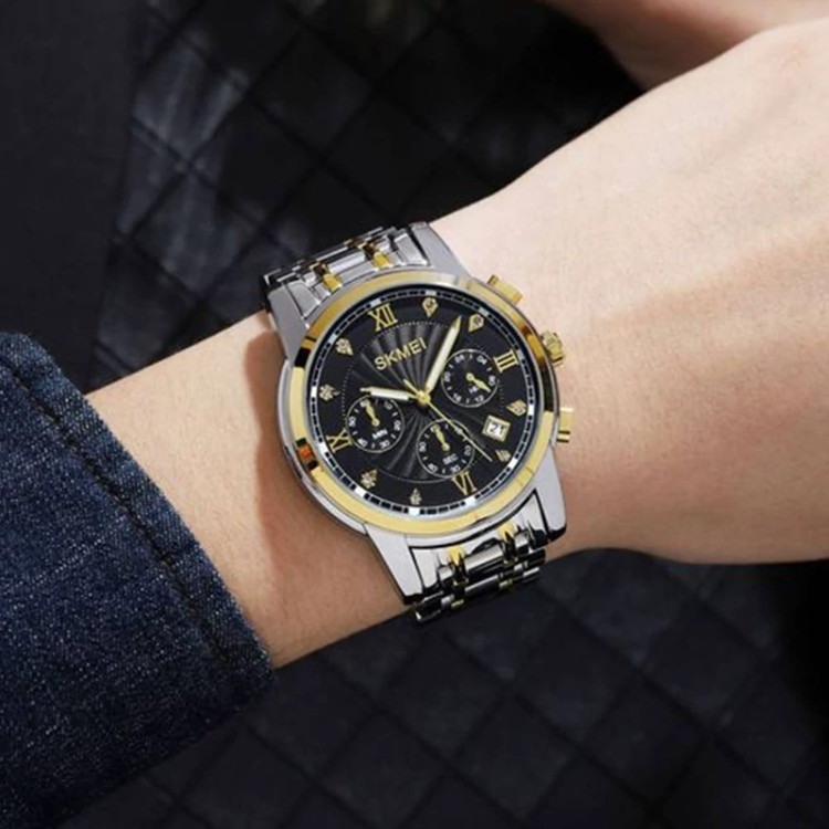 ساعت مچی مردانه اسکمی مدل SKMEI 1904 SKMEI 1904 دارای طراحی جذاب و دلنشین . 3 موتور فعال کورنوگراف بند استیل قفل استیل عقربه ها شب تاب شیشه کریستالی مقاوم در برابر ضربه و خش جنس بدنه آلیاژ روی Zinc ضد حساسیت ضدآب در حد دست شستن تقویم کرنومتر قطر صفحه 41 میلیمتر کارت گارانتی 1 ساله موتور همراه با جعبه اصلی SKMEI
