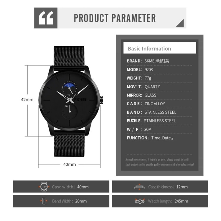 توضیحات تکمیلی مناسب برای آقایان نوع کاربری اسپرت , رسمی , روزمره , فشن طرح صفحه آنالوگ ابعاد 245*12*40 میلی متر قطر قاب 42 میلی متر عرض قاب 40 میلی متر ضخامت بدنه 12 میلی متر عرض بند 20 میلی متر وزن 77 گرم فرم صفحه گرد جنس شیشه معدنی رنگ صفحه مشکی جنس بدنه آلیاژ روی رنگ بدنه مشکی جنس بند استیل رنگ بند مشکی مقاومت در برابر آب 30 گارانتی یکسال گارانتی موتور