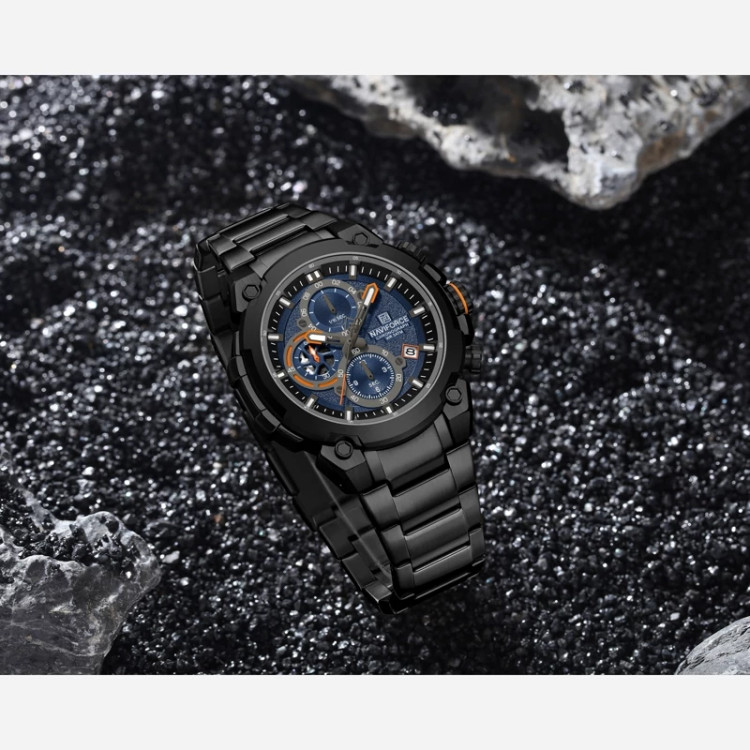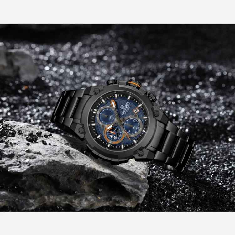 ساعت اورجینال نیوی فورس مدل 8071 یک مدل خاص با بند فلزی موتور ژاپن رنگ خاص بدنه استیل ضد زنگ دارای یک سال گارانتی همراه جعبه و کارت گارانتی