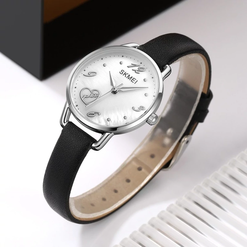 قطر صفحه 28 میلیمتر بند چرم قفل استیل رنگ ثابت جنس بدنه آلیاژ روی Zinc ضد حساسیت شیشه کریستالی مقاوم در برابر ضربه و خش ضد آب 3ATM