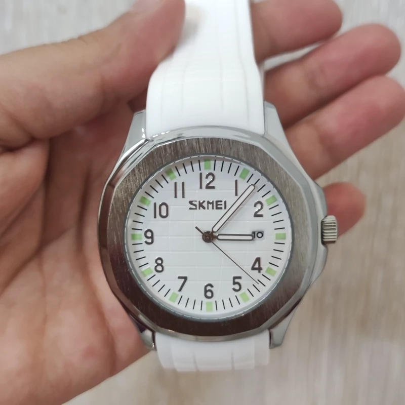 مناسب برای آقایان, بانوان نوع کاربری اسپرت, روزمره, فشن طرح صفحه آنالوگ قطر قاب 50 میلی متر عرض قاب 45 میلی متر ابعاد 255*12*45 ضخامت بدنه 12 میلی متر عرض بند 20 میلی متر وزن 72 گرم فرم صفحه گرد جنس شیشه معدنی رنگ صفحه آبی, سفید, مشکی جنس بدنه آلیاژ روی رنگ بدنه نقره ای جنس بند سیلیکون رنگ بند آبی, سفید, مشکی مقاومت در برابر آب 30 گارانتی یکسال گارانتی موتور